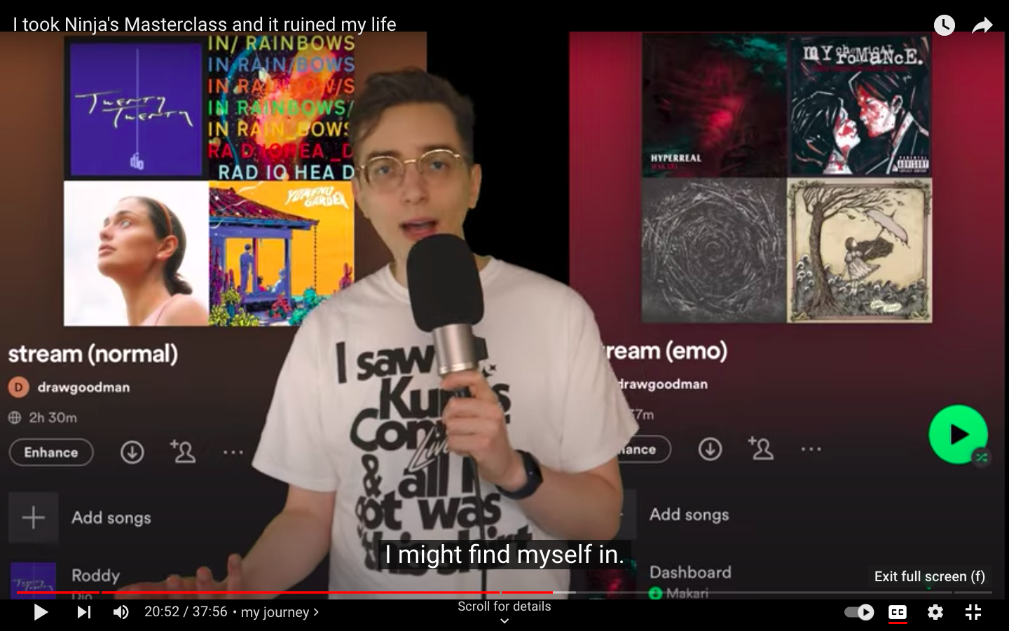 Anyway, in his most recent video about taking Ninja's streaming Master Class he shows some spotify playlists.