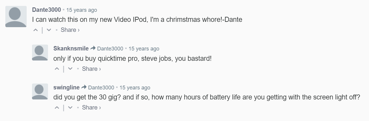 Anyway, this post also has one of my favorite comments I read while doing this.