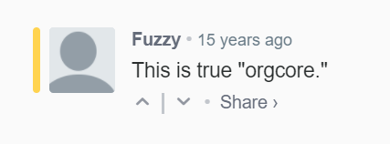 You're right I was. Through many hours deepdiving into ten years of comment sections and long dead forums only accessible via Wayback Machine, the earliest example I can find of "orgcore" being said on punknews.org was in March of 2006.