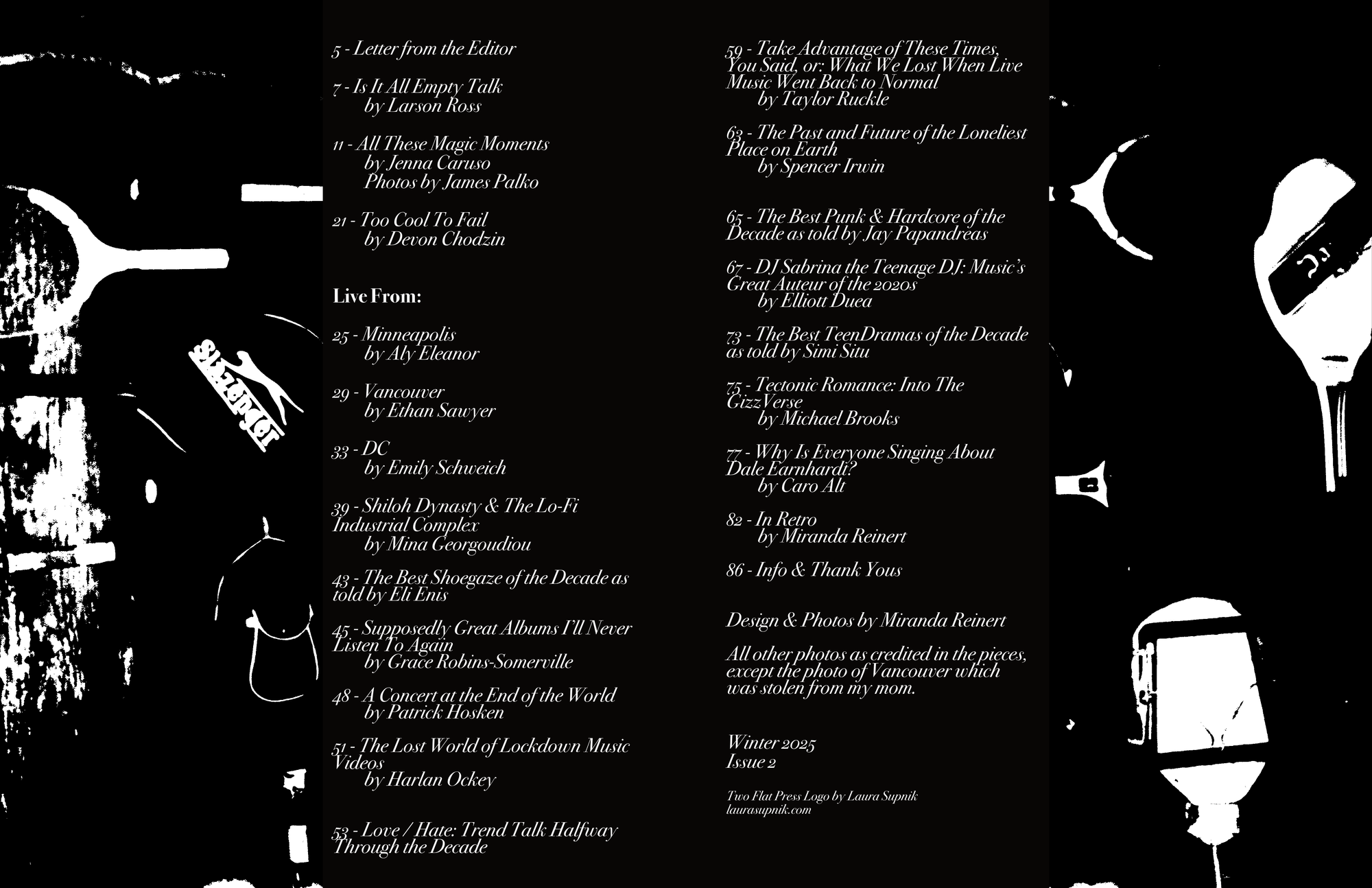 When I was deciding what I wanted to focus on in this issue, it seemed pretty obvious to talk about the first half of the decade. I don’t want to publish anniversary pieces and I don’t see a point in anything overly topical in an irregularly published print publication, so we go to the recent past. Some people have an aversion to talking about lockdown era COVID when it comes to music and art, but, if you want to talk about the recent past, it’s there even if you don’t say it. COVID underscores everything– this zine included. I got COVID and then pneumonia at the end of 2024 and it delayed everything in my life.